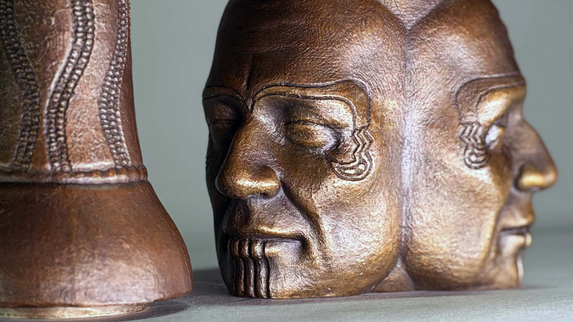 Sculpture now forms the core of my work. Each bronze begins with drawing and modeling, then develops through research and experimentation with patinas. I often shift bronze into turquoise-like surfaces, echoing the role turquoise holds in Indigenous art while reflecting the hues of the Southwest that shaped my upbringing. In glass, I pursue equally experimental transformations—pushing material toward forms that carry memory, resilience, and cultural continuity.
